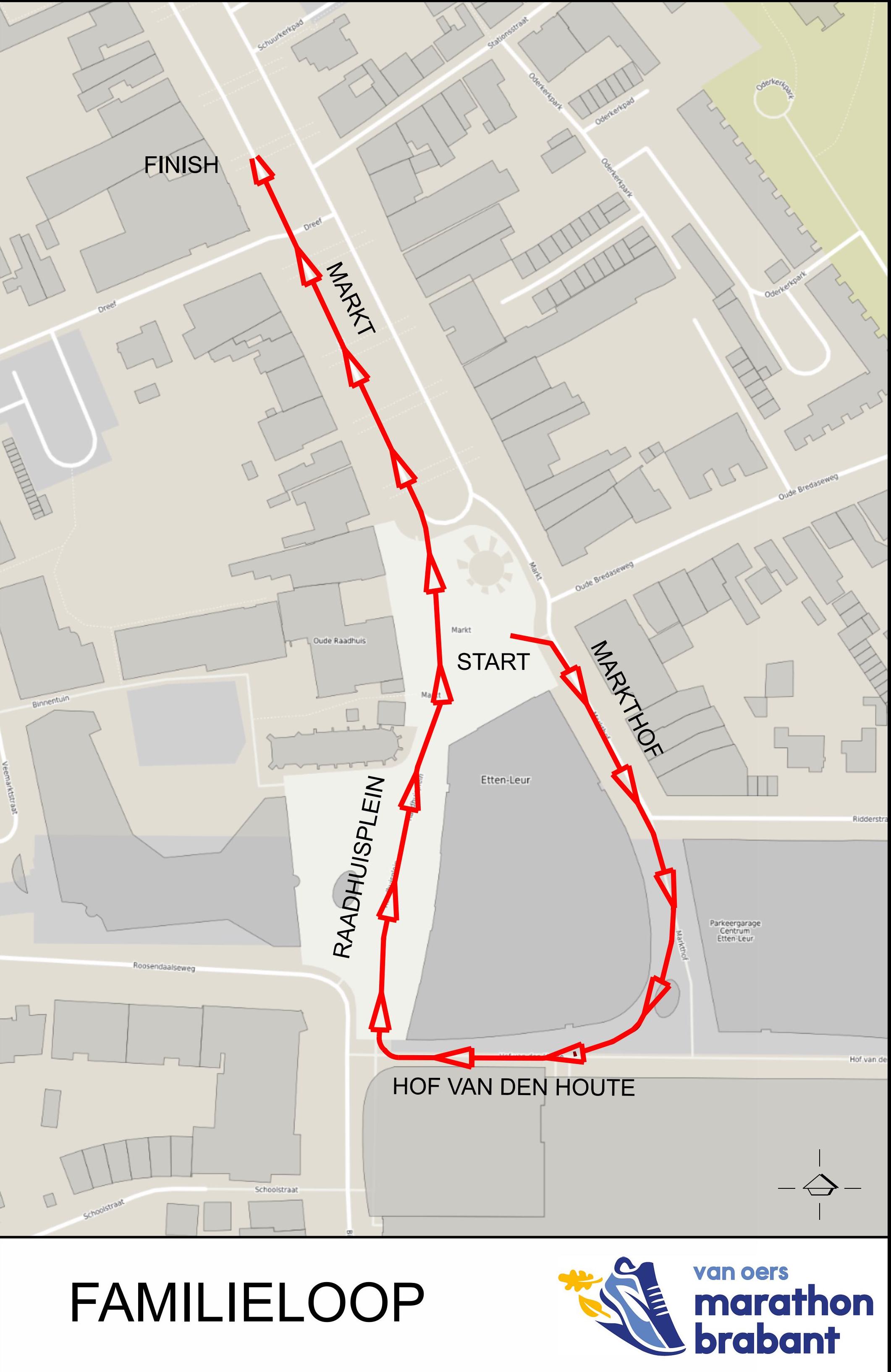 De Familieloop start in twee groepen met kinderen van 0 tot en met 7 jaar en kinderen van 8 tot 12 jaar. De eerste groep loopt 1 ronde (500 meter) en de tweede groep een andere ronde (1100 meter).